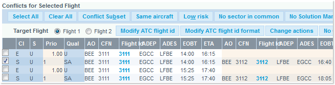 - Click on the Conflict Subset button to open a window with all conflicts connected with the selected flight: