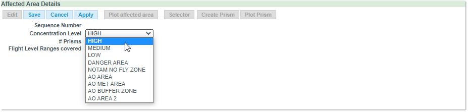 - Select the Concentration Level from the pull-down menu (this will also determine the color in which the area will be plotted on the Map):