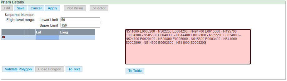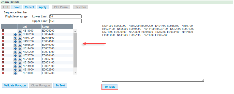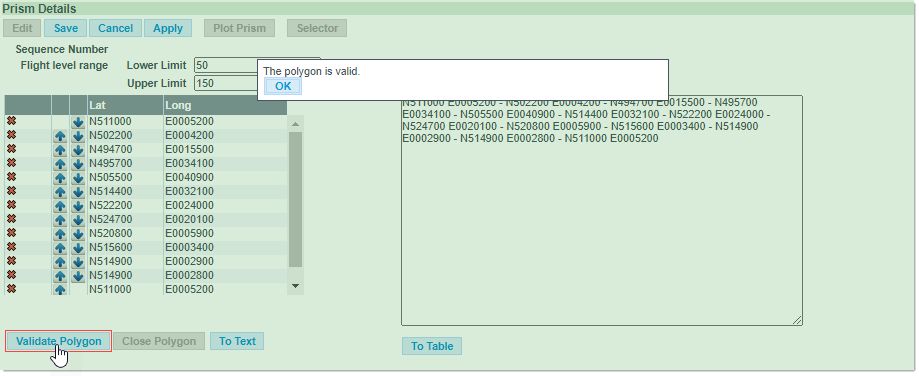 Note: The polygon must be closed by repeating the first coordinates. Clicking on the Close Polygon button will automatically close the polygon.