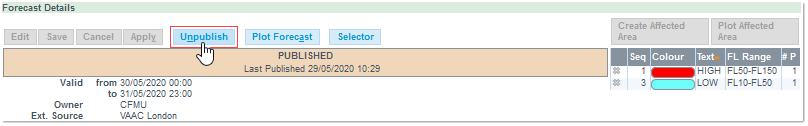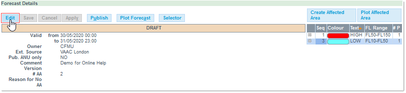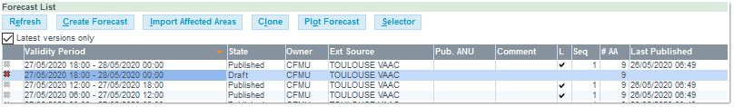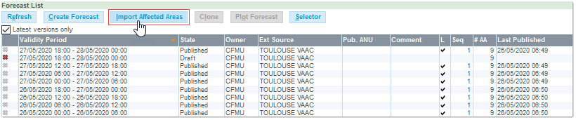 The Forecast is now added to the Forecast List, and you can resume the creation process, and create the Affected Area(s.)