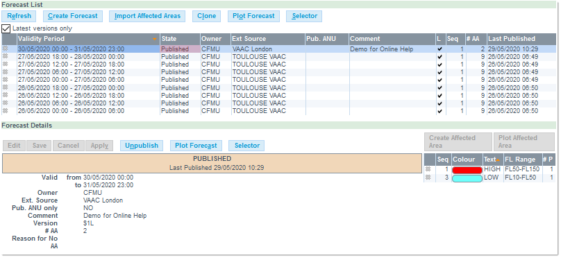 - FL Range: the Flight Level ranges covered
