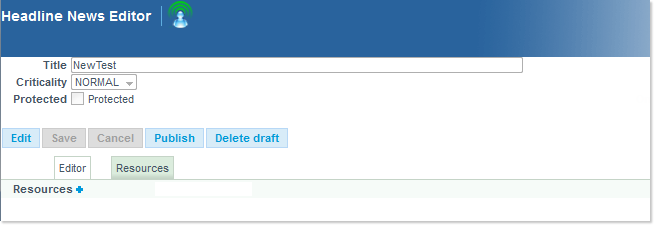 This is what the Headline News Editor looks like when first opened under the Resources Tab: