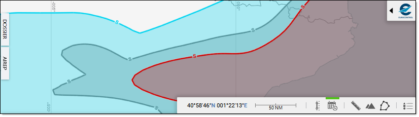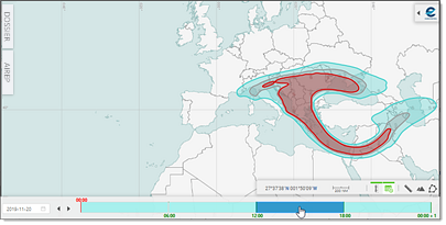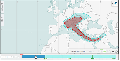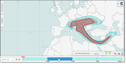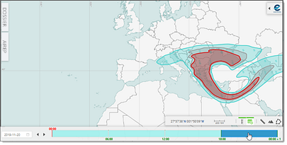 - Click inside a time range block to display the corresponding forecast, if any available or otherwise made (in)visible by means of the other map controllers: