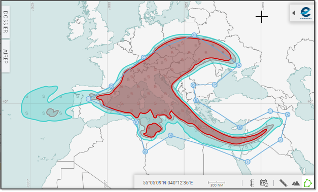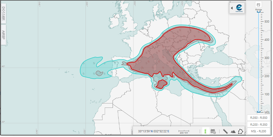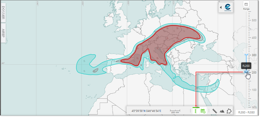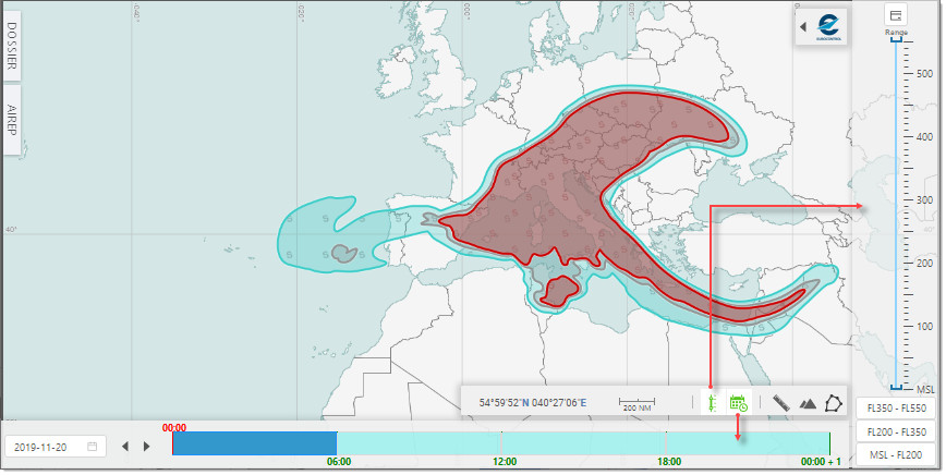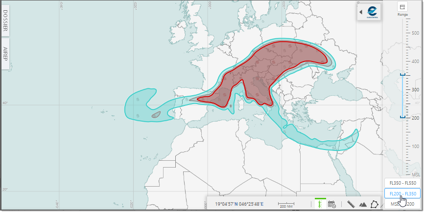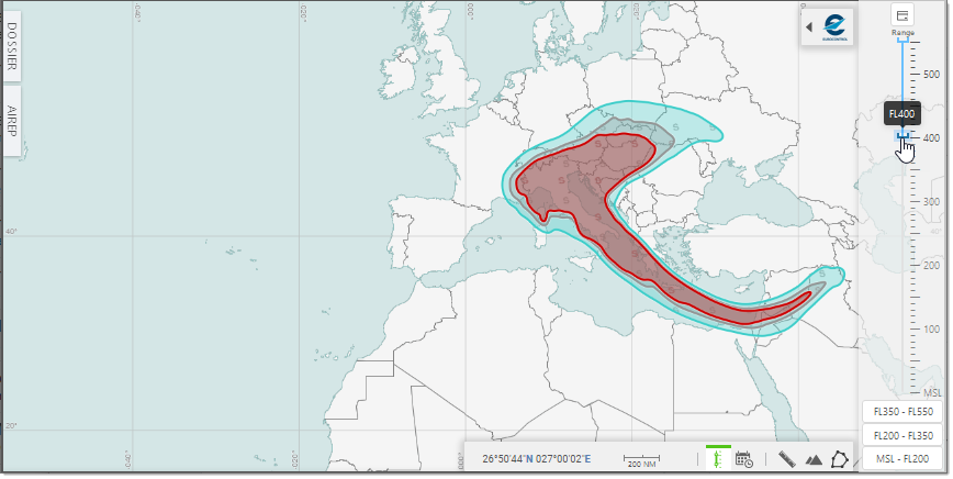 To specify a given Range, use the mouse pointer to set the Upper and/or Lower slider to the desired value - see how moving up the Lower value to FL400 impacts the display: