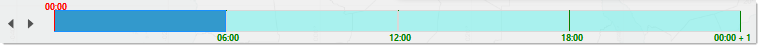 The timeline is divided in 6-hours blocks or varying color to indicate whether or not a forecasted event is available for display for the concerned time segment: