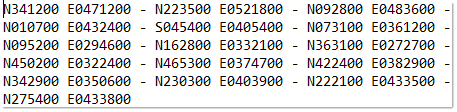 Note: The coordinates format is the one in use for the EVITA Import tool.