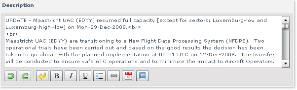 This is where you enter a longer text detailing the event. This is the text which will be displayed in the Events and Meetings Detached View, when you consult the details on an event.