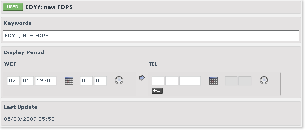 - USED, Keywords, Display Period and Last update for the third and last one.