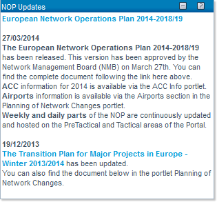 NOP Updates Typical Scope: NOP Updates: Information on the dates and scope of the European Network Operations Plan last updates.