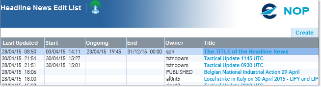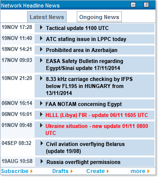 This Portlet announces events that have a significant impact on the ATFCM Network – the same way the headlines of a newspaper announce the main events of the day. These events may be foreseen or not, such as industrial action, airspace closure, sporting event, bad weather with significant regional impact, etc.