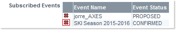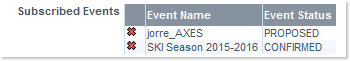 And this is how the above selection is indicated in the subscription form: - Subscribed Events: Lists the events to which you have requested a subscription from their respective Event Detail windows, by means of the Subscribe ... button - and populate the following table: