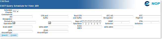 Query Schedule The Query Schedule function button allows to query details of a flight from the schedule which was uploaded in CSST. You can also delete or modify flights here before initialisation. Note: wildcards cannot be used in query schedule.