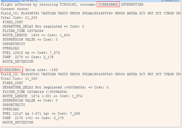 The first line of the report shows the opportunity route identification (e.g. GCRREGBBG1). This is the alternate route that is regarded as the most interesting. The detailed analysis of this route is present in the report.