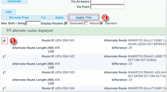 Should you wish to reroute a flight, or analyse the possible alternate routes, click on the 'A' that is visible in the W (What-if) column. The rerouting function