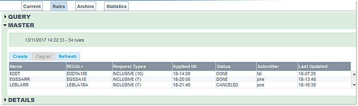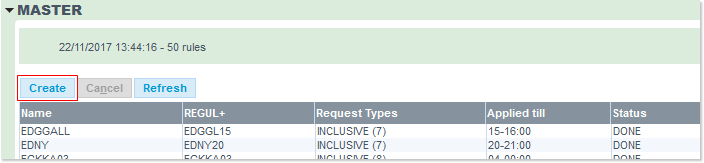 - Create: used to create a new Rule - opens the relevant DETAILS (sub)section(s) for edition - see below