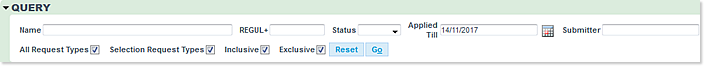 Lastly, the Reset and Go button respectively reinitialise the Query form and launch the specified query.
