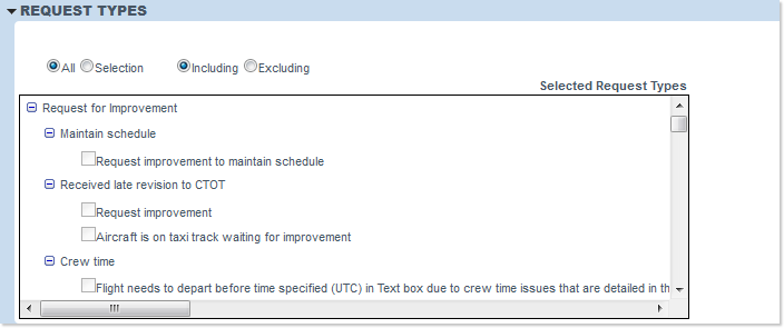 - Selection Request Types: to specify that rules matching a “Selection of Request Types” should be displayed in the query results