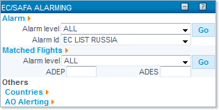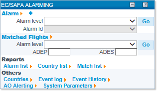 The Alarm section of the EC/SAFA ALARMING Portlet features a shortcut to search for specific matches, by means of two drop-down lists: