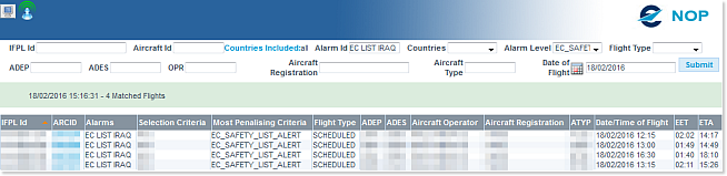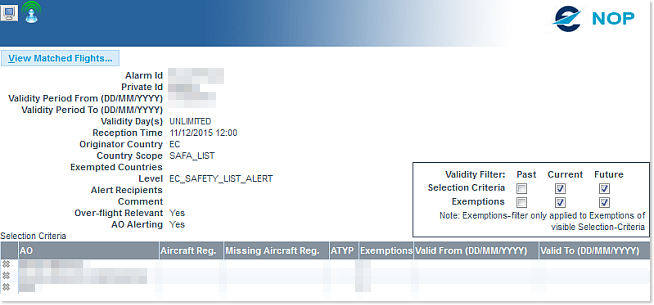 The View Matched Flights... button opens the following SAFA Matches Flights List window: