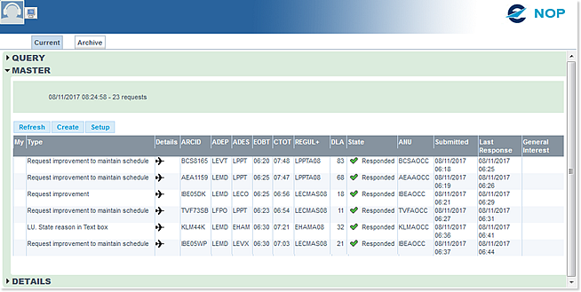 - ARCID, ADEP, ADES, EOBT, REGUL+, ANU, General Interest: see above in the Query section