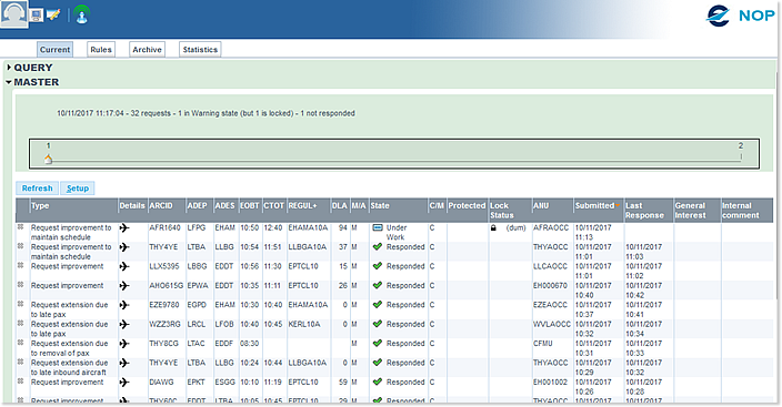 - Current: lists, in the MASTER section, all E-Helpdesk requests that: