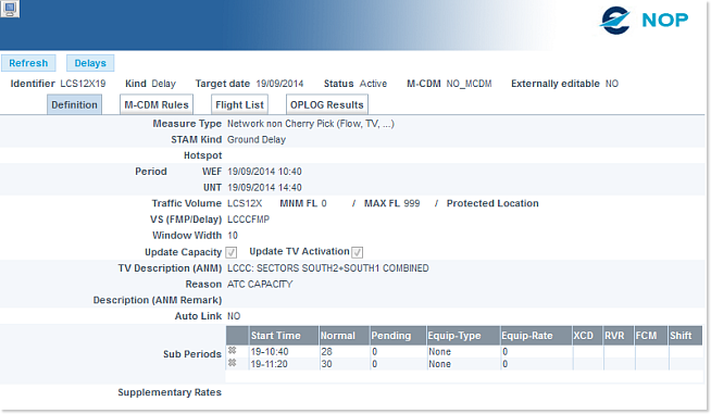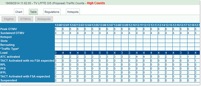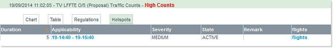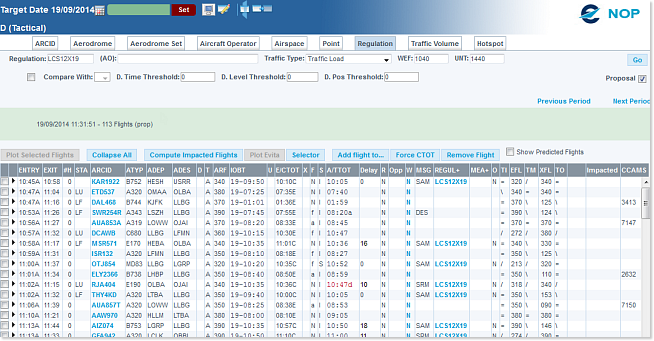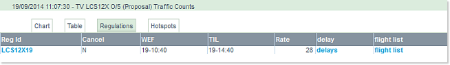 - flight list: the link opens the Flight List Portlet, listing all flights impacted by the set regulation: