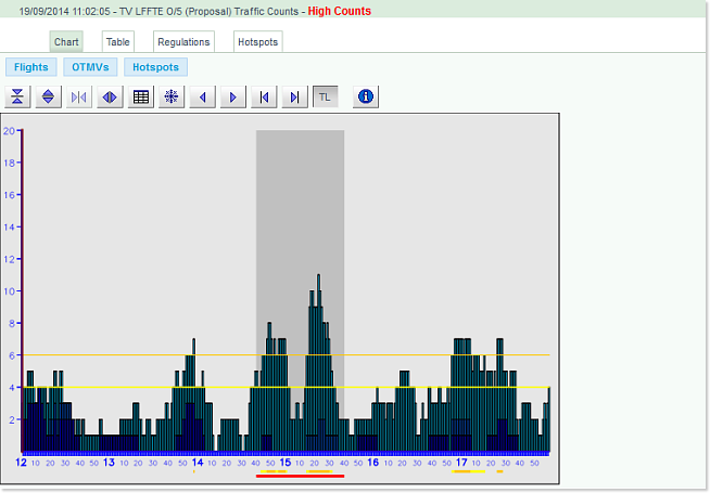 The Traffic Counts Portlet gives the number of flights for a given Traffic Type. Flights may be selected on different query criteria for given time period and interval.