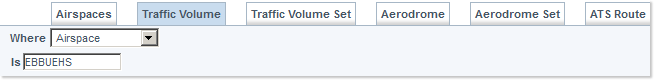 The Traffic Volume List page displays the list of traffic volumes associated with an FMP (traffic volume set) or a given location (airspace, aerodrome, set of aerodromes or point) for the selected Target Date.