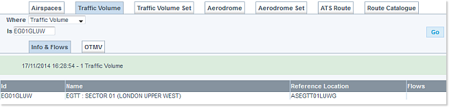 An additional OTMV tab is only present when querying for a Traffic Volume identifier which is defined on an airspace reference location.