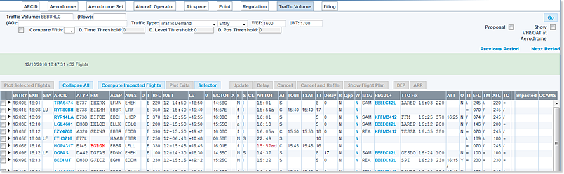 ENTRY, EXIT, STA, ARCID, ATYP, ADEP, ADES, D, RM, T, ARF, IOBT, U, E/CTOT, X, F, S, CL, A/TTOT, TOBT, TSAT, TT, AT, Delay, R, Opp, W, MSG, REGUL+, TTO Fix, ATT, O, TI, EFL, TM, XFL, TO, Impacted, CCAMS.
