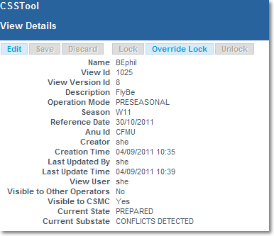 Note that the different buttons Edit, Save, Discard, Lock, Override Lock and Unlock are disabled depending on the context.