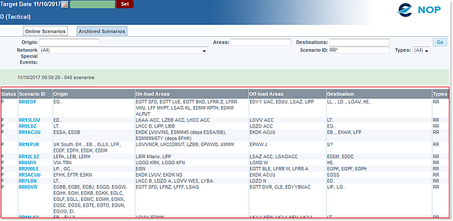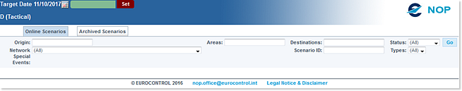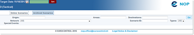 Selecting the Archived Scenarios brings a new query area, very similar to the one in use for the Online Scenarios - except for the Status filter.