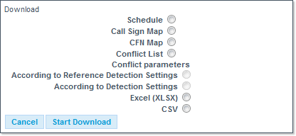 - Conflict List - Only accessible if detection has been completed, the downloaded file contains all conflicts in the schedule (resolved and unresolved).