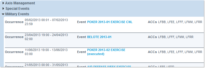 This Portlet allows you to view all the details for the queried ACC. An autosuggest mechanism will propose you, in a range gradually narrowing as you type in, all matching ACCs identified in the ACC plan whose display period include the current portal UTC date: