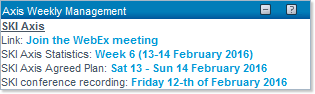 The Axis Weekly Management Portlet provides, when available, links to various documents (in PDF format) - see the example of the SKI Axis Statistics for Week 6 (13-14 February 2016):