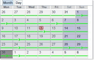 When you are in the Month mode, a green symbol (Event Mark) indicates that there is an event scheduled for a given day, either starting or ongoing: