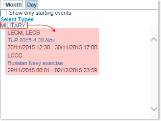 Click on this tab to display the events scheduled for the selected day, including those having started earlier but which are not ended yet...