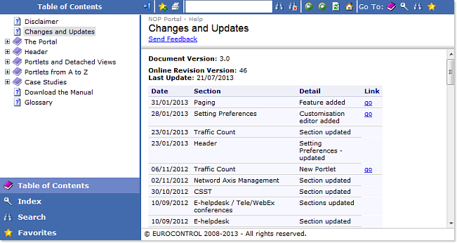 Clicking on the HELP button opens a pop up window, giving access to a comprehensive Help package. A complete navigation system allows the user to search, browse, bookmark and print any page within the Help system.