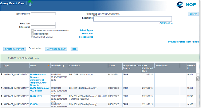The List link from the Calendar Portlet opens the Query Event View Detached View - as does the Search Events link.