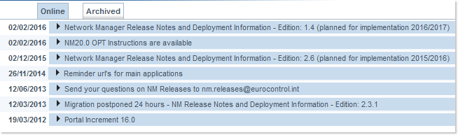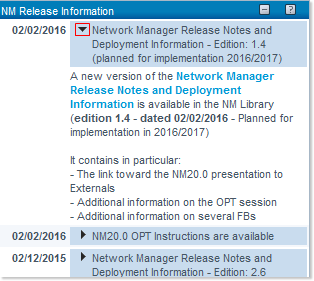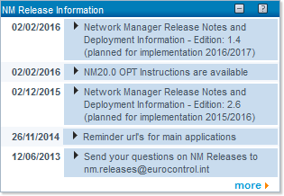 The NM Release Information Portlet lists the last changes implemented in the Portal, as well as some insight on future releases and evolution.