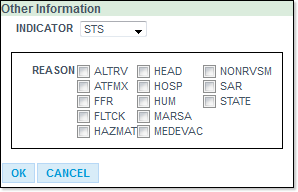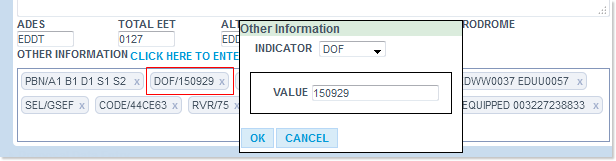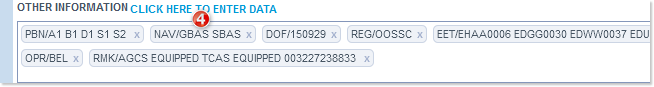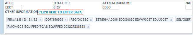 - OTHER INFORMATION: List of additional indicators, when relevant (as specified by ICAO for Field 18 of the FPL).