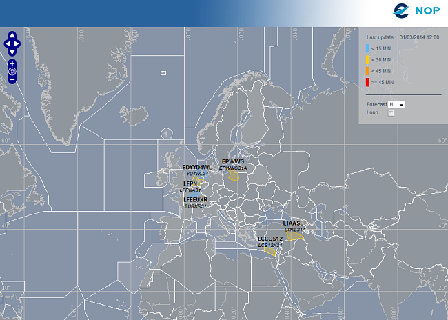 The More button on the ATFCM Network Situation Portlet has opened  the detached view with a full screen view of the map.