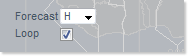 While in Loop Mode (when the Loop check box is ticked), the display is refreshed every 30 seconds, looping through an H to H+4 cycle as selected with the Forecast menu:
