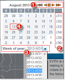 1 the left and right single arrows going one month back or forth, the left and right double arrows going one year back or forth, and the square recalling the current date;