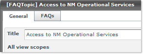 Once opened, the Topics edit window shows two tabs: General and FAQs, further detailed in the next sections.