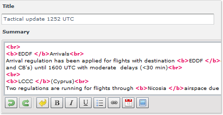 INFO is the lowest severity level. The news is inserted with no emphasis. The associated colour is defined in WIND.