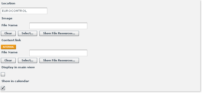- Location, Image, Content Link, Display in main view and Show in calendar.