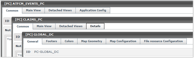 Global DC comes with the following tabs: General, Footers, Colors, Map Geometry, Map Configuration and File resource Configuration. covering all high level configuration parameters.