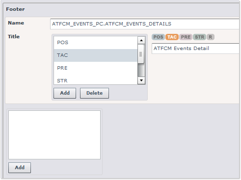 Next select the scope in which to want the Title text to be modified and make your changes in the Title text field (in this example, the scope is TAC and the new title is ATFCM Events Detail):
