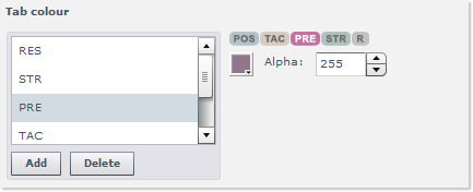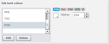 - Tab text colour: the color of the tab text - by means of a color picker - and its transparency - by means of the Alpha setting